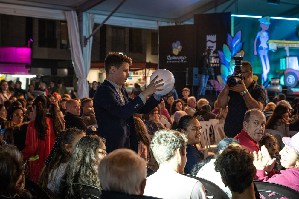 Este formato permite que todos los asistentes disfruten simultáneamente de efectos visuales sorprendentes, grandes ilusiones y momentos de participación colectiva. La magia de escenario es ideal para galas, convenciones y grandes eventos: