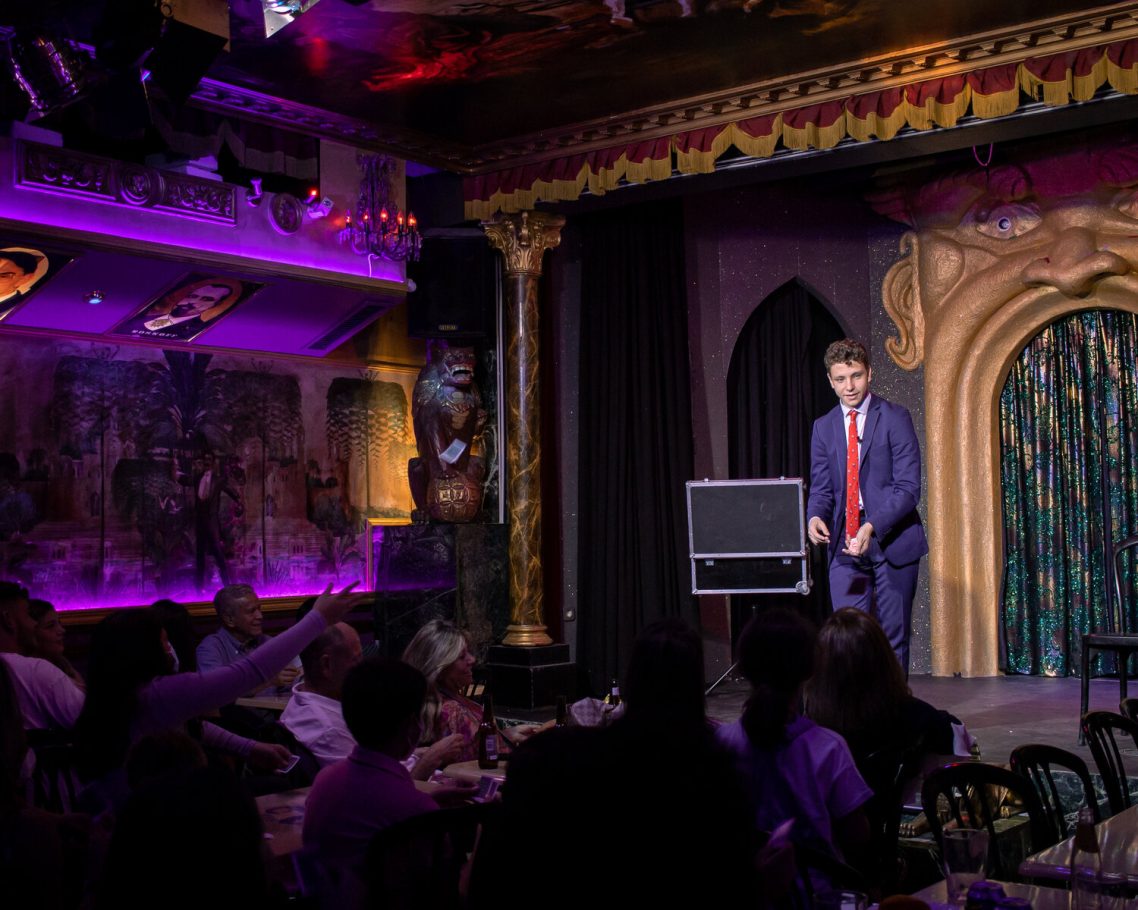 Tomás Sanjuán, finalista de Got Talent y mago de referencia en eventos corporativos, transforma cualquier evento en una experiencia inolvidable. Su magia ha cautivado a marcas como Real Madrid, Xiaomi y McDonald’s, y ha sorprendido incluso en la casa de Cristiano Ronaldo en Nochevieja.